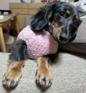 いつも玄関までやってきて、撫でてもらおうとしています。